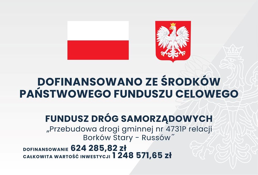 Gmina Żelazków pozyskała dofinansowanie ze środków Funduszu Dróg Samorządowych na realizację zadania pn.: "Przebudowa drogi gminnej nr 4731P relacji Borków Stary-Russów"
